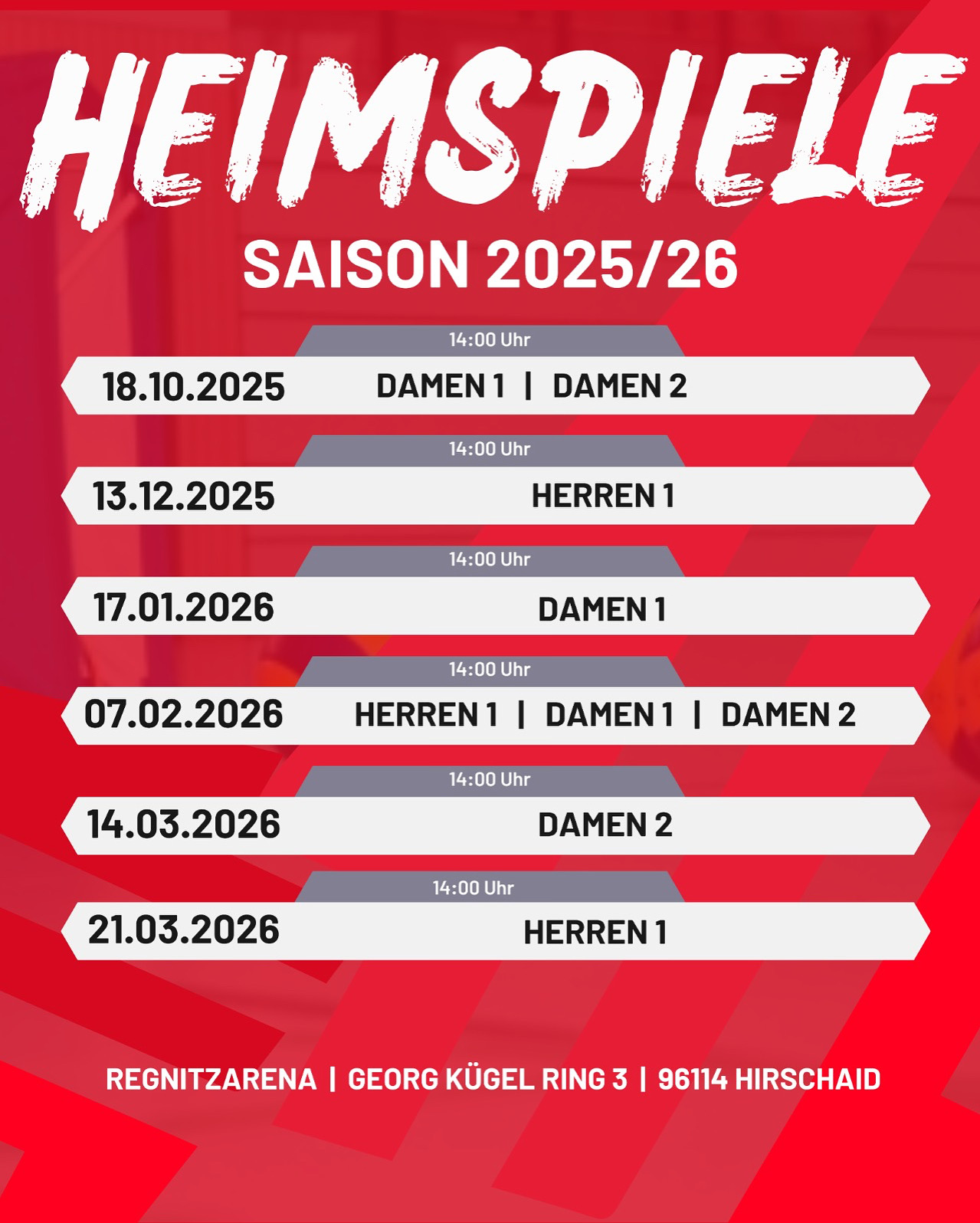 Heimspieltage unserer Teams – Saison 25/26